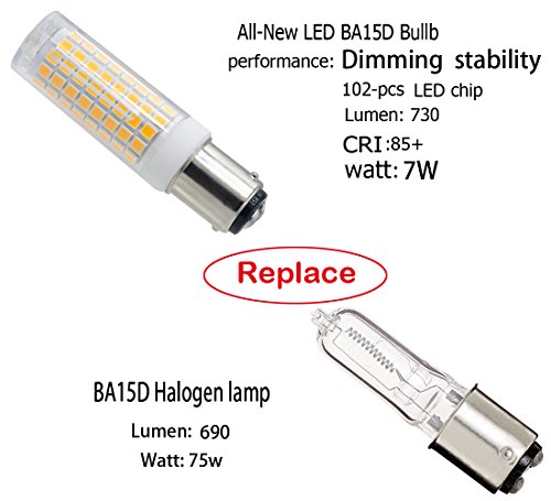 BA15D LED, All-NEW(102LEDs) Dimmable BA15D Blub, Double Contact Bayonet Base, 7W BA15D Bulbs (75W Halogen Bulbs Equivalent), T3 T4 360 degree beam angle (2 Pack) … (7W, Warm White)