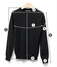 尺码 ①衣长 ②胸围 ③肩宽 ④下摆围 ⑤袖长 ⑥袖臂围 ⑦袖口围