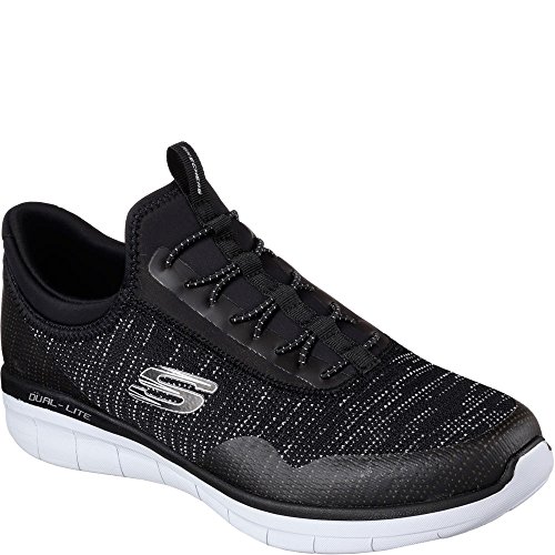 Binding : Apparel Product Description SKECHERS Men's Synergy 2_0 Turris cross-trainer shoes feature a Skech Knit Mesh nearly one piece fabric upper. Synthetic overlays at toe and heel for added stability. Stretch bungee laced front panel for easy slip on fit. Padded high-apex collar for added comfort. Soft fabric shoe lining. Air Cooled Memory Foam cushioned comfort insole. Shock absorbing Dual-Lite® lightweight midsole. Flexible dual-density midsole design for added comfort and range of motion. Rubber traction outsole. 0