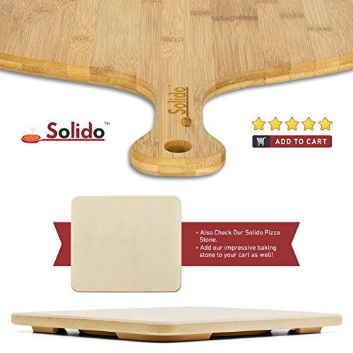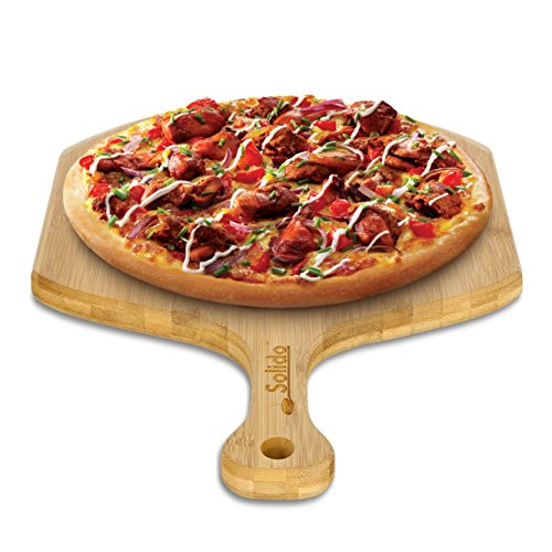 Transform your kitchen into a pizza parlor Pizza making is fun for the whole family as everyone contributes their favorite toppings and cheeses. Now you can replicate the pizza parlor atmosphere at home and serve a piping-hot pizza from your kitchen oven with the Solido Bamboo Pizza Peel. Our pizza paddle lets you remove pizzas and other foods from the oven while keeping hands safely away from hot racks and pans. Durable and food-safe for all your serving tasks Bamboo is lightweight yet resilient (harder than hardwood!) that resists cracking and warping, and it won't dull your knives or pizza wheel as other woods do. It replenishes itself in 1 year without pesticides or fertilizers, making it an eco-friendly and healthy kitchen accessory. Naturally antibacterial and less likely to convey foodborne illness, bamboo is easy to maintain with mild detergent and air-drying. When not in use, you can hang it inside a pantry from the handle's integrated eyelet. Beauty and versatility Every Solido Pizza Peel boasts a unique wood grain pattern, making it both eye-catching and functional. You can make your pizza directly on the floured service before transferring it to your preheated pizza stone, and it can also serve as a cutting board or cheese tray. The front beveled edge slides swiftly under pizzas when cooking is done. Because a wood peel won't conduct heat as a metal peel does, you can confidently place your other hand under the peel for greater stability during transfer to your table. Ditch the delivery and serve up an authentic pizzeria experience at home. Add the Solido Bamboo Pizza Peel to your cart today. 0 |