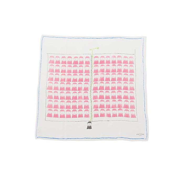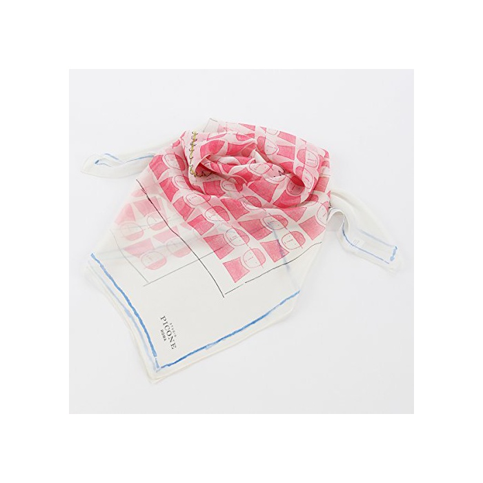 (피코네《앗칫소리》)PICONE ACCESSORI 실크 스카프 대형 핸드 프린트 90×90 노트 핑크계 일본제