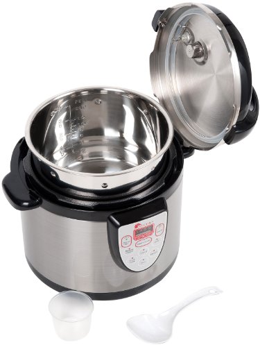 6-quart multifunction electric cooker replaces your pressure cooker, slow cooker, food steamer, rice cooker, browning/sauté pan, soup maker. Automatic keep warm.
