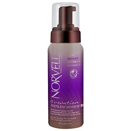 Norvell VENETIAN Sunless Self Tanning Mousse Delivers naturally dark color in a foaming, bronzing formula for quick, flawless results. Fragrance: Paradise BreezeSize: 8oz Easy to Use: Silky smooth foam spreads evenly and uncontrollably. Streak-Less formula.Immediate Natural Color: Longer lasting, smooth, sienna blend to give you the 'just off the beach' sun-kissed glow you desire. Formula self-adjusts to your natural color.Oil-Free Formula will not clog pores.Nourishes: Hemp Seed and Aloe Vera pump up skins hydration to extend your color.Skin Firming: Reduces fine lines & wrinkles.Odorless tanning: No telltale DHA smell. Essences of almond and raspberry insure odor-free tanning, even hours after use. Directions: For best results, apply to freshly cleansed skin. Use sparingly near elbows, knees, ankles and hairline. Wash hands IMMEDIATELY with soap and water after application. Avoid contact with clothing for 15 minutes. Wait one hour before swimming, exercise or bathing. Full color will develop within 24 hours and lasts up to six days. NOTE: This product can cause staining of household materials. Warning: This product does not contain sunscreen and does not protect against sunburn. KEEP OUT OF REACH OF CHILDREN. Made in the USA | Not Tested on Animals | Paraben Free