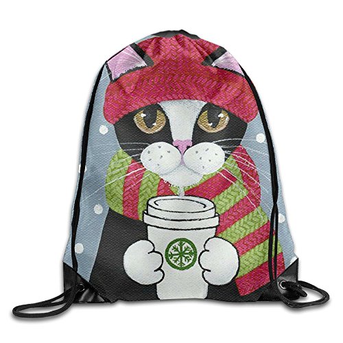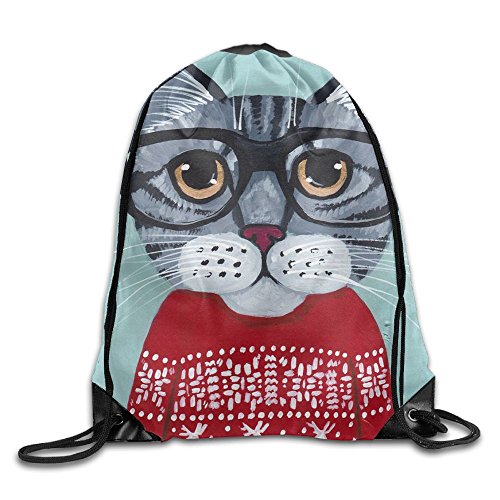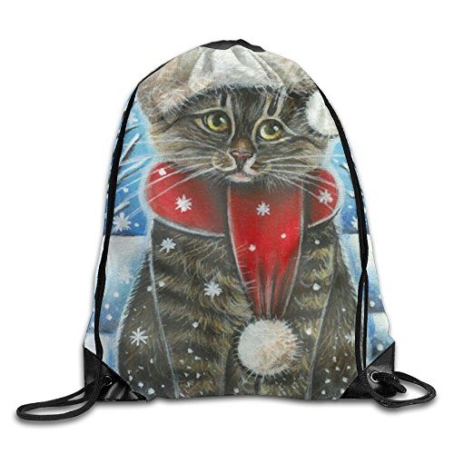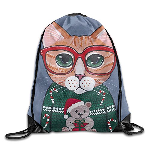 | (Waooo)/Accessories/Luggage, Bags Travel/DIRECT FROM USA/Christmas Cat Casual Drawstring Backpack Kids Lightweight Shoulder Bag Tote Gym |