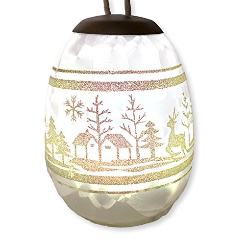 Glittery Christmas Ornament - White LED Lighted Ball Ornament with White Glittery Winter Scene - Hand Painted Holiday Design