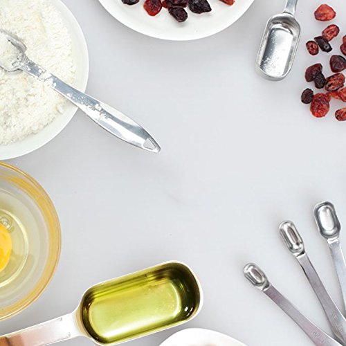 Set includes: -1/8 tsp. (0.63 ml) -1/4 tsp. (1.25ml) -1/2 tsp. (2.5ml) -3/4 tsp. (3.75ml) -1 tsp. (5.0ml) -1 Tbsp. (15ml) With Sunkuka,you will cook like a Pro!---Can't believe that the delicious food are cooked by you.