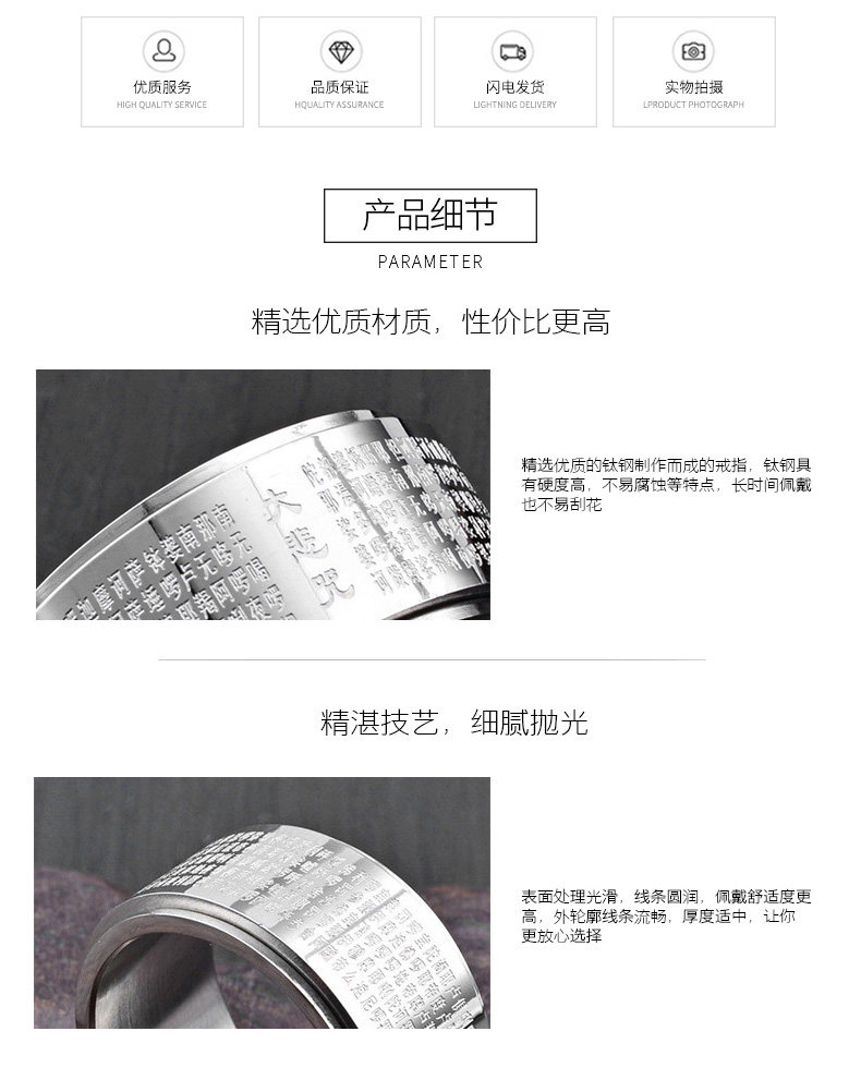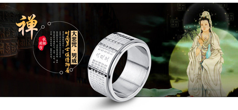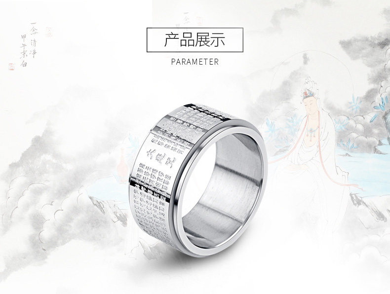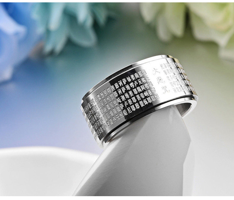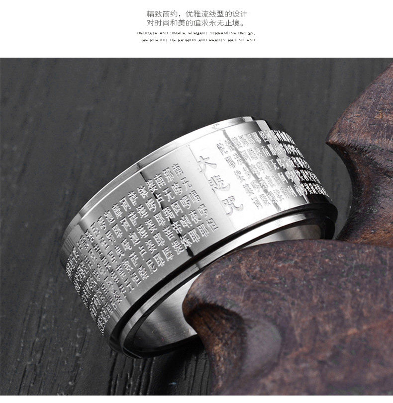 大悲咒可转动戒指男士潮人钛钢个性霸气指环
