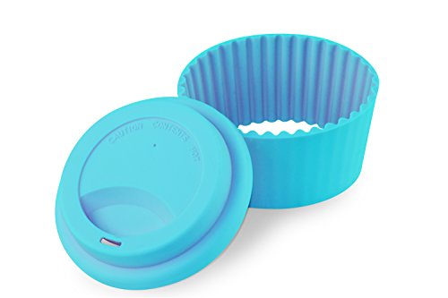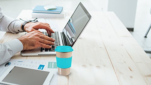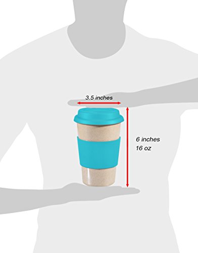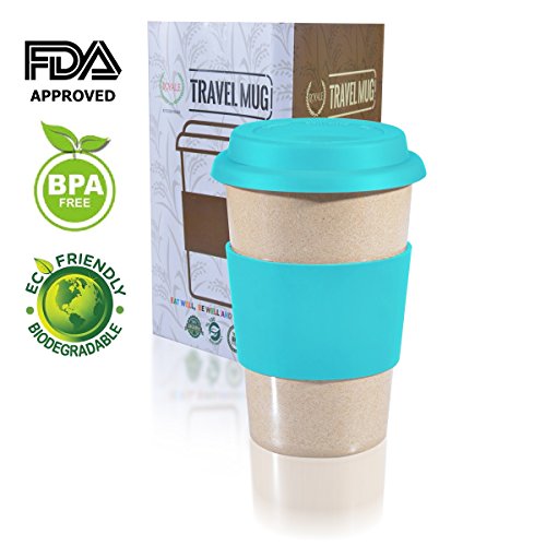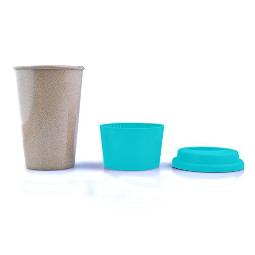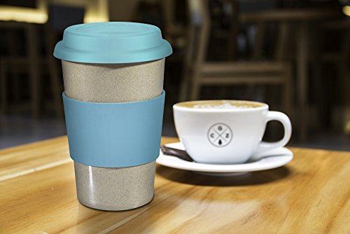 16oz 100% Organic Eco Friendly Reusable Travel Mug, To Go Takeaway Coffee Cup BLUE, Biodegradable Material FDA Approved BPA Free, Leak Proof Silicone Lid & Heat Resistant Grip.Free Recipe ebook