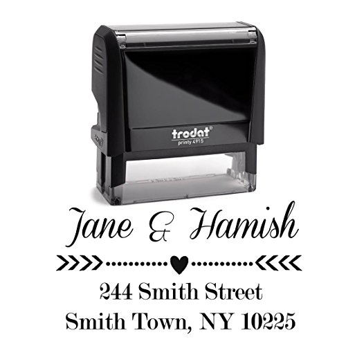 -. Feature : Return Address Stamp Personalized. Custom self inking address stamps are a useful gift to give for housewarmings, real estate clients and weddings / Use in place of name and address labels, return address labels, personalized address labels and wedding address labels saving time and money / Self inking stamps personalized with your custom details will bring an extra, modern touch to your stationery / Our customized stamps are made using high quality Trodat materials; your pre-inked rubber stamp comes ready to go with enough ink for 20,000 Impressions before needing to be Re-inked / Stamp Size (approx.) - 7/8" x 2 3/8" (22mm x 58mm.) Fast Processing and Shipping - Our custom rubber stamps are made in house and sent the same day you order