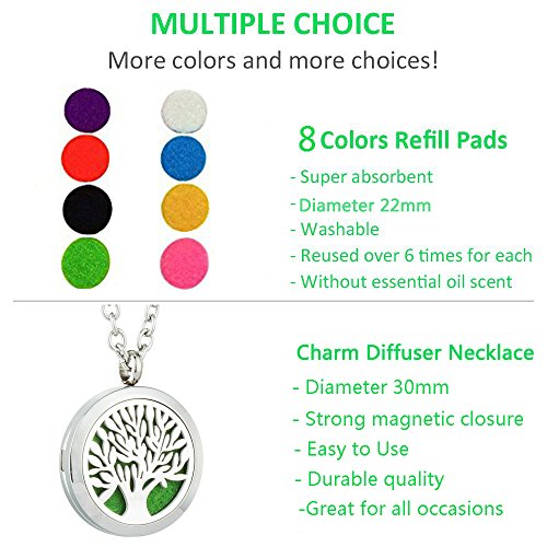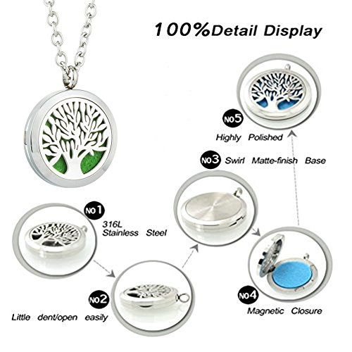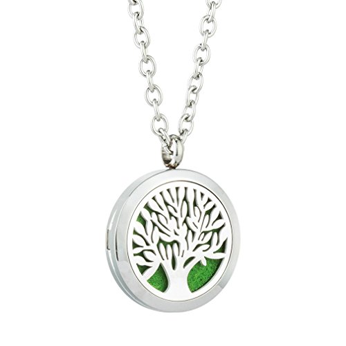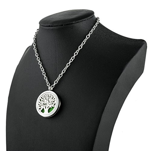 JAOYU Essential Oil Diffuser Necklace Tree Of Life Pendant Stainless Steel Aromatherapy Locket For Women & Men