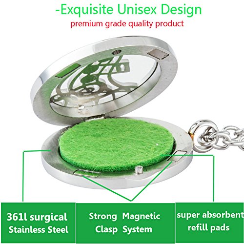 - Necklace is pretty, sturdy and works great. Premium grade diffuser perfume locket pendant with free 24" chain, with 8 reusable multi-color absorbent Pads that will complement any style of dress, and can be worn to any occasion.