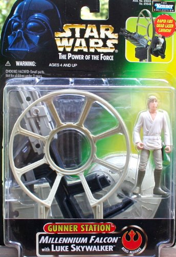 MILLENNIUM FALCON WITH LUKE SKYWALKER * GUNNER STATION * 1997 Star Wars Power of the Force Action Figure Battle Scene. Re-enact classic Star Wars battle scenes from the Millennium Falcon's Gunner Station! Features: Rapid Fire Quad Laser Cannon & Gunner Swivel Chair! Interlocks with the Han Solo Gunner Station (SOLD SEPARATELY). Originally released in 1997. Ages 4 and up. From Kenner