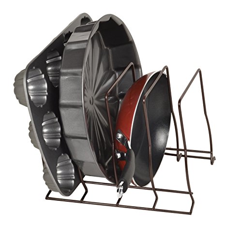 - Stores lids and bakeware standing vertically, eliminating the need for messy stacking