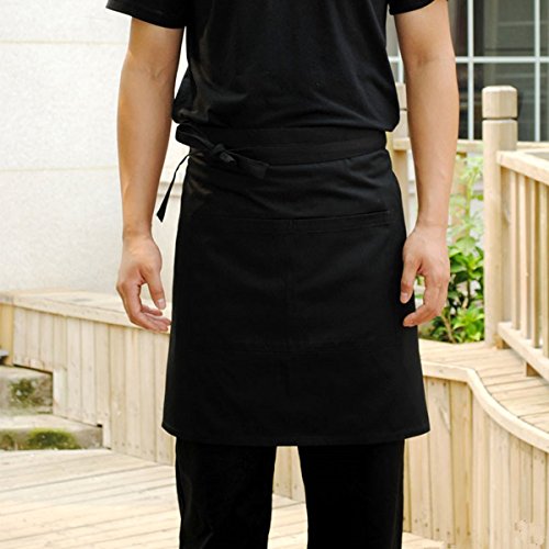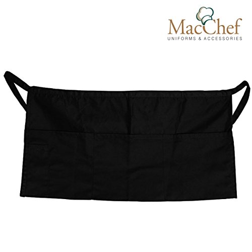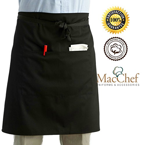 MacCheft 100% Cotton 3 Pockets Waist Apron 11.5-inch Long Kitchen Cooking Restaurant Bistro Craft Garden Half Aprons for Men, Women, Chef, Baker, Servers, Waitress, Waiter, Craftsmen, Black