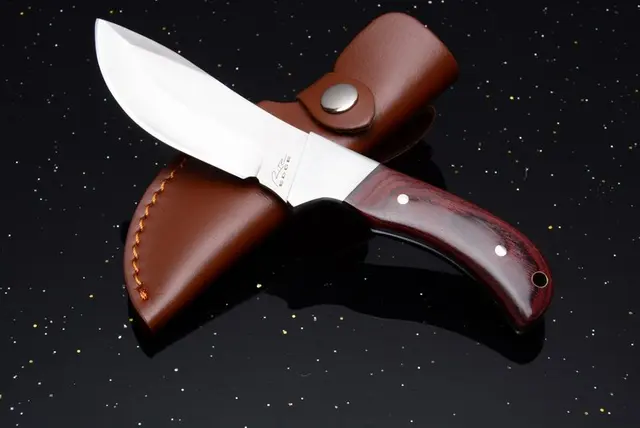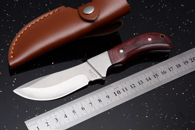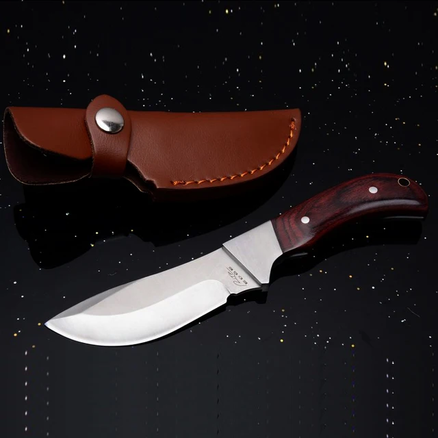 | [해외] 고정 블레이드 나이프 5Cr15Mov 블레이드 나무 핸들 야외 생존 캠핑 나이프 가죽 칼집 |