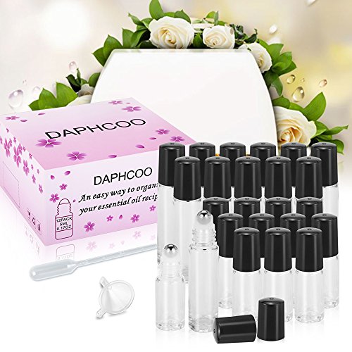 Daphcoo Essential Oil Roller Bottles Clear, Roll on Bottles, Roller Top, 10ml 12 Pack, 5ml 12 Pack, 24 Pcs Labels