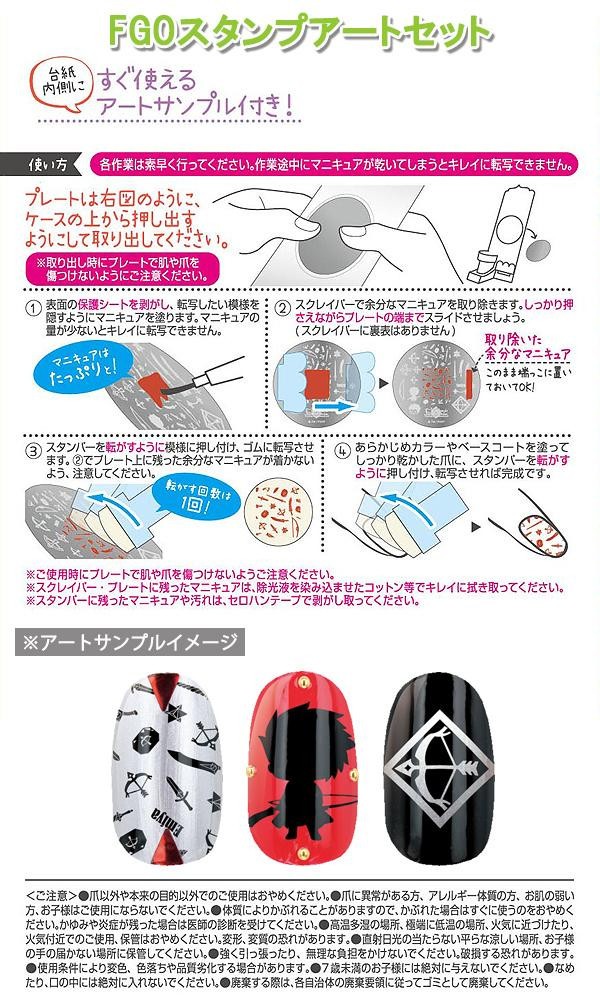 | 製造地 | FGOマニキュア:台湾、ホログラム・FGOスタンプアートセット:中国 |