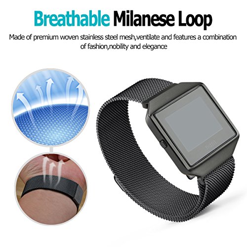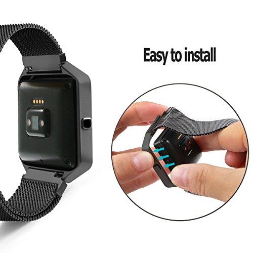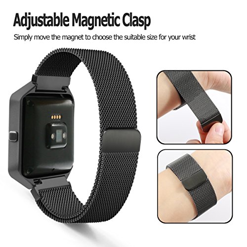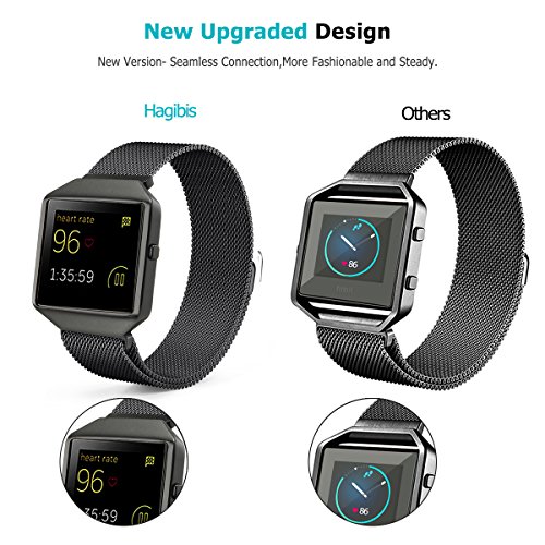 Fitbit Blaze Band with New Metal Frame Hagibis Milanese Loop Stainless Steel Bracelet Strap Magnet Lock Band for Fitbit Blaze Smart Watch-Small Large Black Sliver Rose Gold