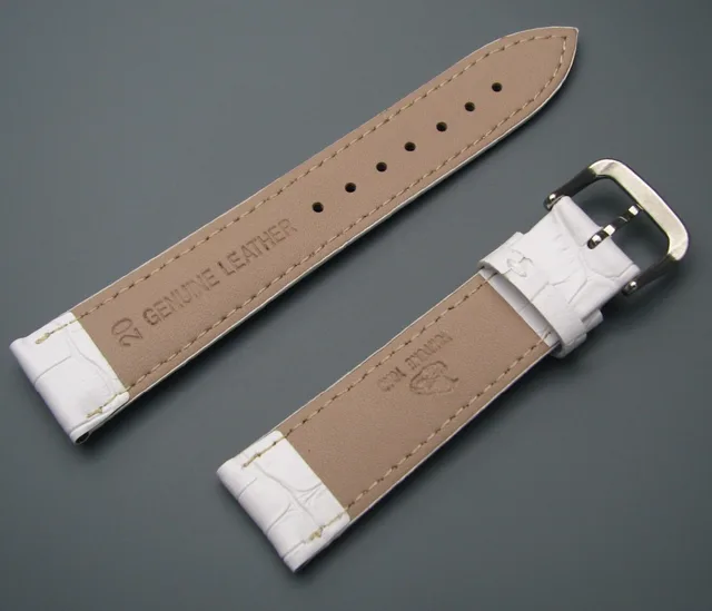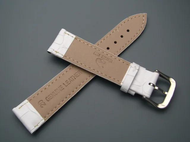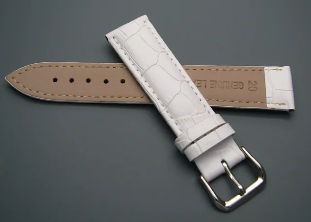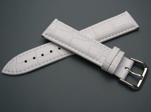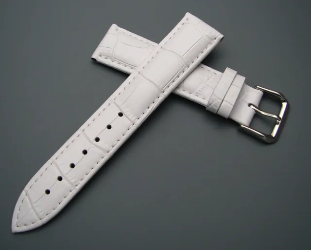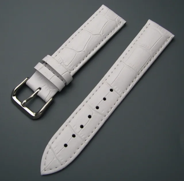 | [해외]12 14 16 18 20 22 24 미리메터 남성 여성 정품 소 가죽 가죽 흰색 클래식 악어 곡물 시계 밴드 스트랩 벨트 실버 핀 버클 |
