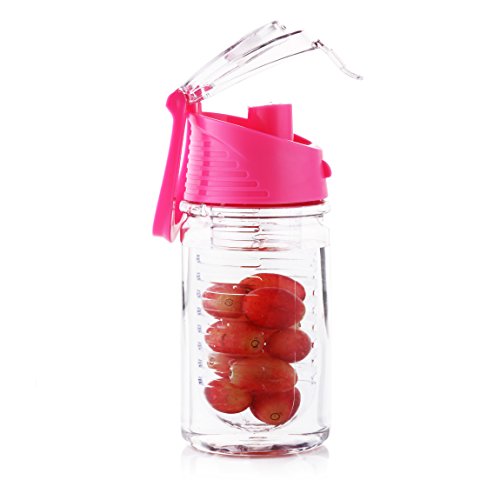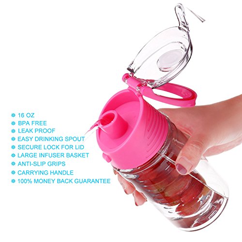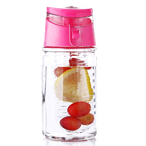 - • EASY TO CLEAN-not a lot of fruit infusers are designed to fit the need of the user like this infuser which has a removable cover which can easily be taken off for you to clean before fixing back.Save time when washing by simply placing everything in the top lever of dishwasher as the flip top infuer bottle completely disassembles and is entirely dishwasher safe! To avoid drink hit your fact .pls open the top lid first and then open the transparent lid then drink the infuser water bottle