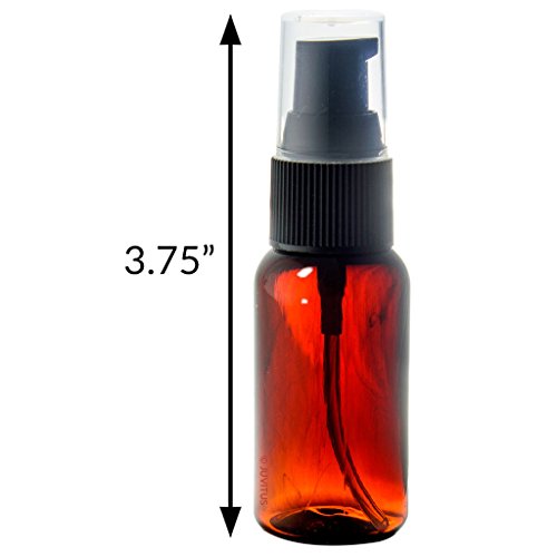 Amber 1 oz Boston Round PET Bottles (BPA Free) with Treatment Pump (12 Pack) + Labels