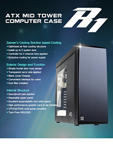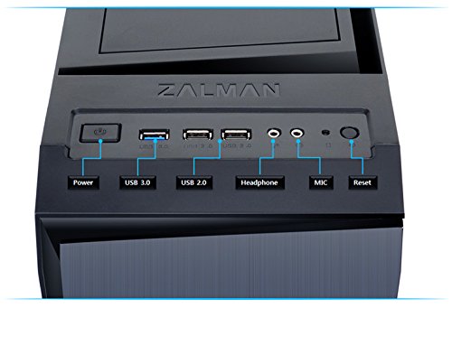 Strong cooling effect and low noise via Zalman's Cooling Solution. Maximized cooling performance with 3 fans that are preinstalled. User can installed up to 5 fans maximum. User can adjust the fan speed in 2 levels. Cools the power supply directly via the bottom air absorbing panel, maximizing efficiency and stability. Metal brush style, simple design. Transparent acryl side panel allows the user to observe the internal system structure. Designed the internal chassis with deep black, giving a luxurious look. USB 3.0 port, audio port/power & reset button are all located in the upper part of the product for users' convenience. Prevents dust from entering the frontal and bottom vent, dust filter installed under the product. Soundproof pad is applied onto the inner part of the frontal door, which reduced noises produced by the PC. Upper panel is separable for users that want stronger cooling. Excellent expandability of 8 ODD/HDD/SSD, 160mm tall CPU cooler, dual radiator water cooler installable. Able to install up to 360mm high performing VGA Card. Multi guide that prevents bending of VGA card and allows additional fan installation. Able to install and uninstall HDD easily without any additional tools.Feature