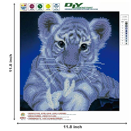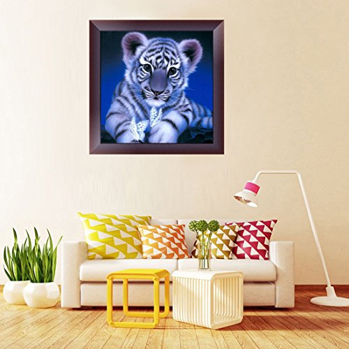 DIY 5D Diamond Painting by Number Kit, Cute Tiger Square Rhinestone Embroidery Cross Stitch Ornaments Arts Craft Canvas Wall Decor
