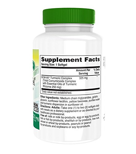 Curcu-Gel 325mg BCM-95 High Absorption Bio - Curcumin Complex - Soy-Free - NON GMO (250mg total Curcuminoids with Essential Oils of Turmeric...