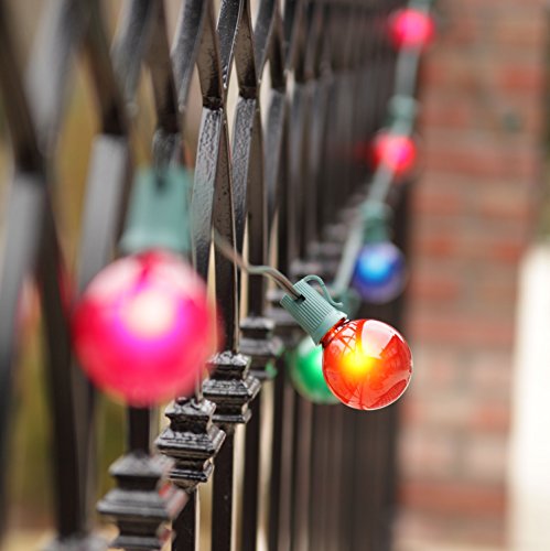 - 33 Multicolor G50 globe lights spaced 18Apart on green wire, 50.0' total length