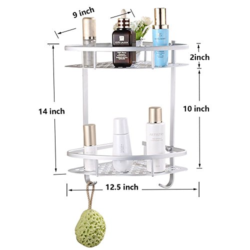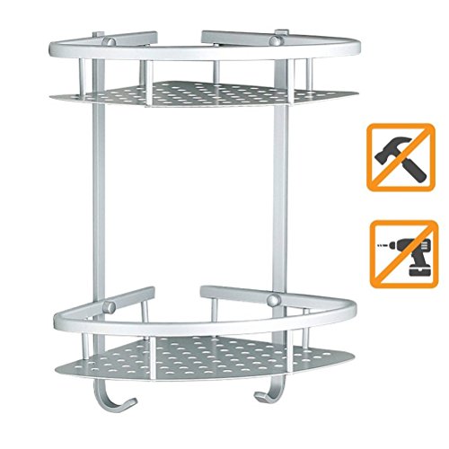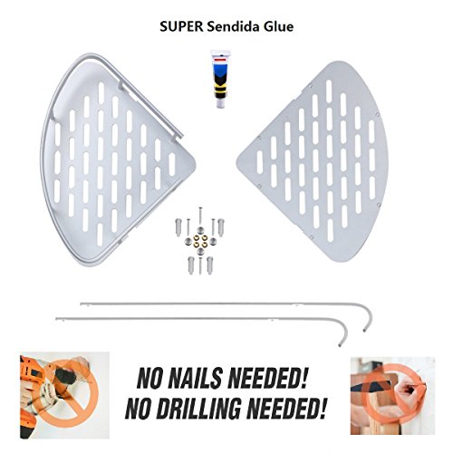 Sendida Bathroom Corner Shelf Rack - No Drilling, DIY, Super Strong Glue Adhering, SD173 Heavy Duty and Rustproof Aluminum 2 tiers Shower Storage Corner Shelves with Hooks