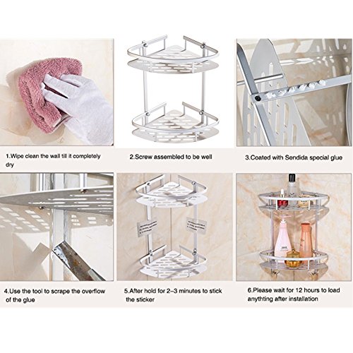Easy DIY and Quick installation, can be installed in any smooth surface as ceramic tiles. Adhesive with the glue and the temporary one-time tape. Please hold on 5 minutes and don't put anything on the shelf within 12 hours.