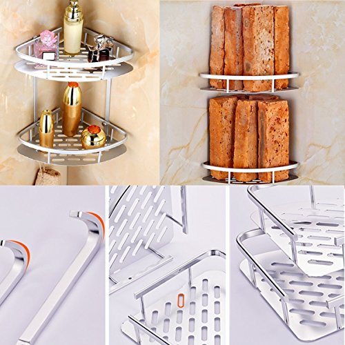 Waterproof and Never Rust. 2 tiers corner shelf rack made of durable Aluminum instead of stainless steel. Easy to clean for shower storage and bath organization.