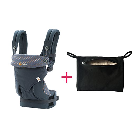 The ergobaby 360 needs no introduction. Moms love it. Lets talk about the additional pocket! This is a much needed piece for all moms who use their baby carriers out and about to stores or chasing older siblings around outside. Why it is not standard for all baby carriers to have a small pocket to hold mom's essential items I do not know. But I've added here to added convenience! It attaches with elastic straps around the button and is easily removed. The revolutionary Ergobaby Four Position 360 Carrier gives parents 4 comfortable and ergonomic ways to wear their babies: Back, Hip, Front Inward, and Front Outward positions.Feature