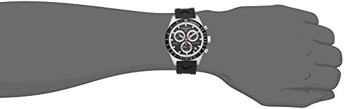 • Stainless steel watch featuring black techymeter bezel and black matte dial with three chronograph subdials and date window