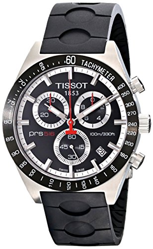 TISSOT MEN'S T0444172705100 PRS-516 BLACK DIAL CHRONOGRAPH RUBBER STRAP WATCH