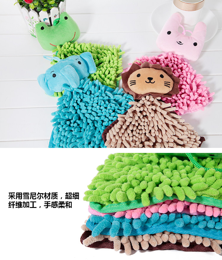 擦手巾 挂式 超强吸水卡通雪尼尔抹布加厚不掉毛擦拭巾厨房搽手帕 3个装