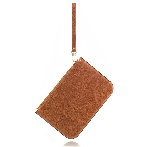 -. Title : Genuine Leather Wallet with Wristlet Strap, Smooth Texture, Zippered Closure, Unisex, RFID Blocking