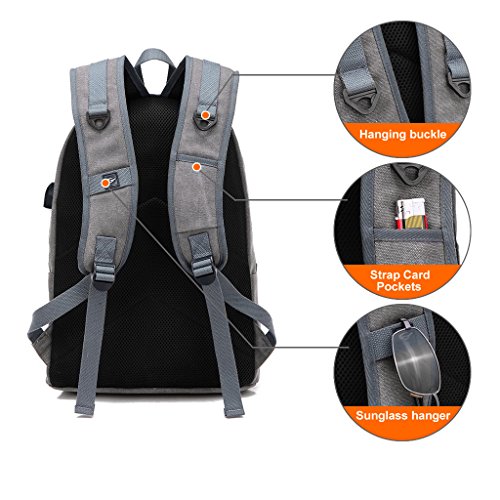 Material: The backpack is made of high quality waterproof canvas, lined with polyester, lightweight, durable.
