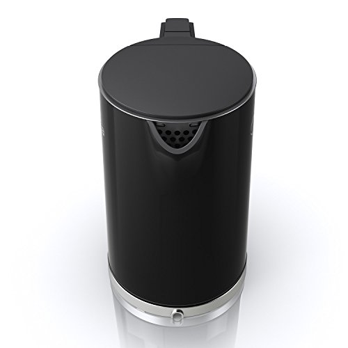 CoolTouch Kettle which provides dual-wall construction that keeps beverages warmer inside while staying cool to the touch on the outside. The kettle can hold up to 1.5 liters and has an interior fill indicator. The MEK17DW-B has a one-button, soft release pop-up lid, and a seamless Stainless Steel inner pot for easy cleaning. The MEK17DW-B also has a 360-degree rotatable base, and automatically switches off when water is boiled, making it surprisingly easy to operate. It will available in black and whiteFeature