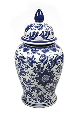 Sagebrook Home VC10369-04 Ceramic Temple Jar, 10" x 10" x 19.25", Blue/White