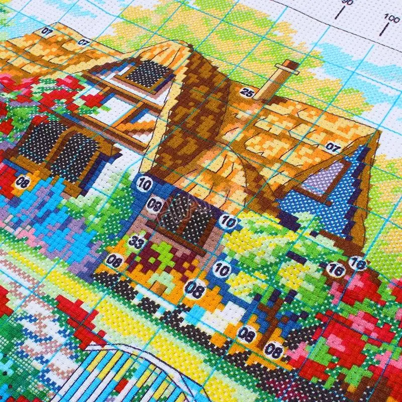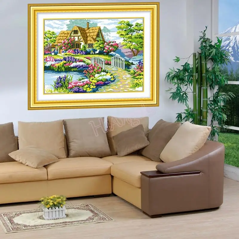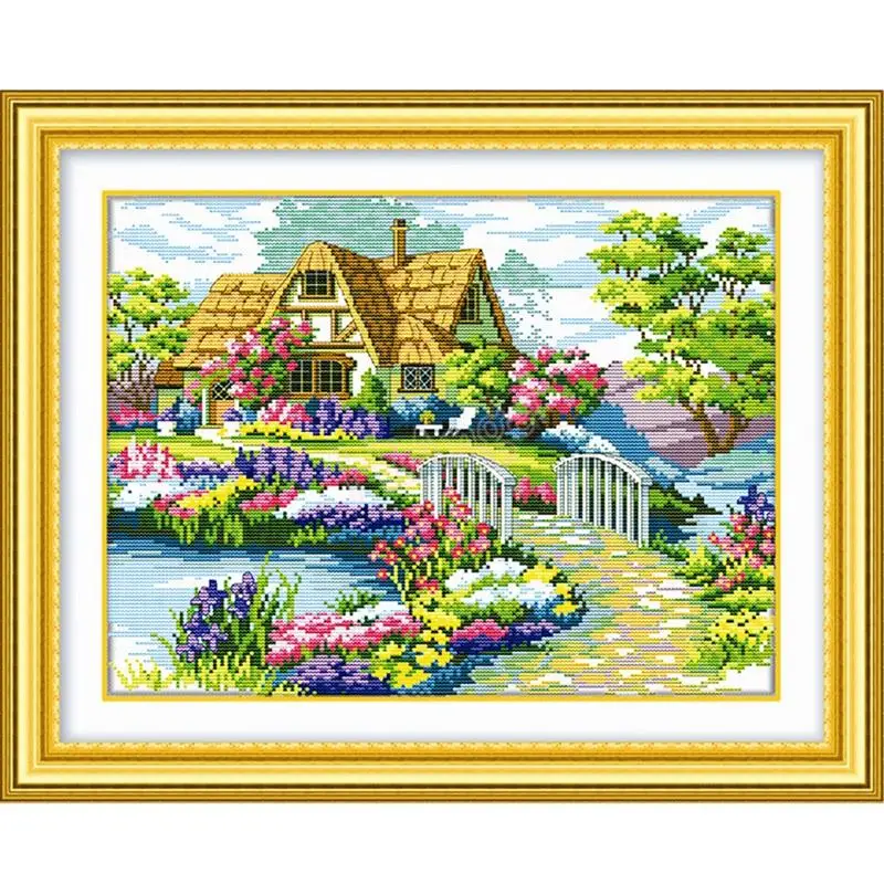 Beautiful Needlework, DIY DMC Cross Stitch,Sets For Counted Embroidery kits, Accurately Printed Countryside Flower House #10449