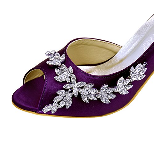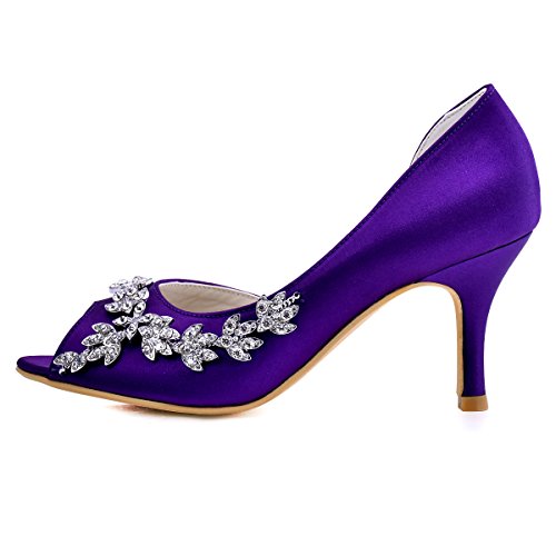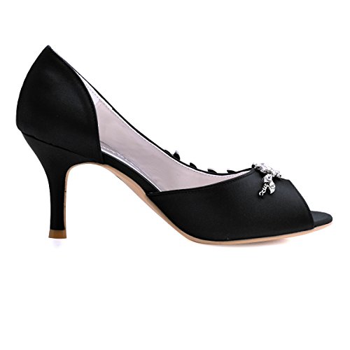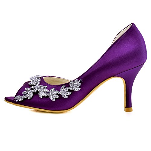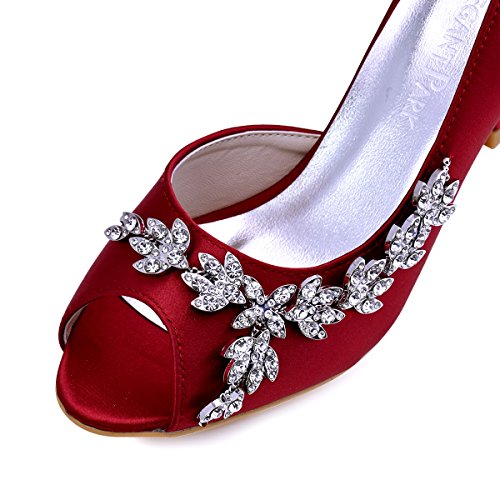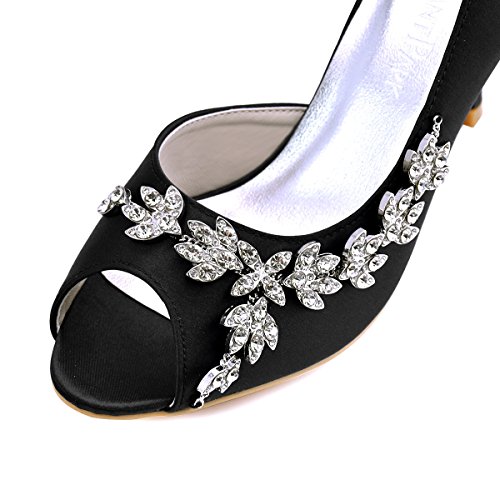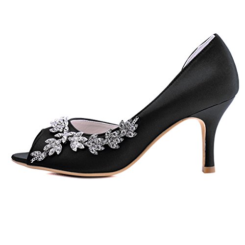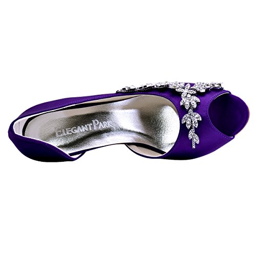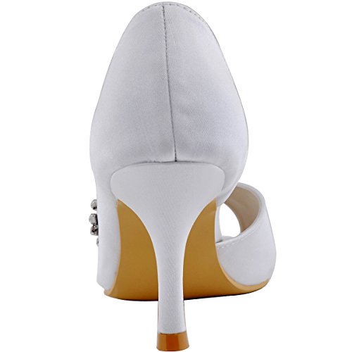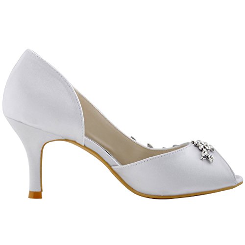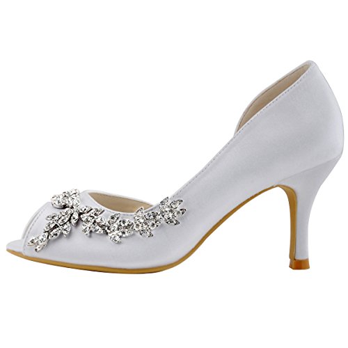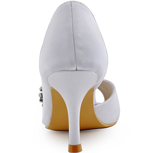 | ElegantPark Women Peep Toe Beading High Heel Satin Wedding Bridal Dress Shoes |