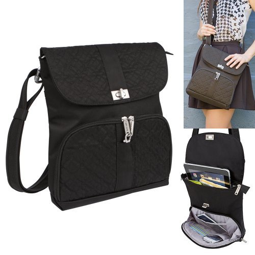 -. Title : Travelon RFID Anti Theft Shoulder Handbag Purse Lady Messenger Bag Travel Black