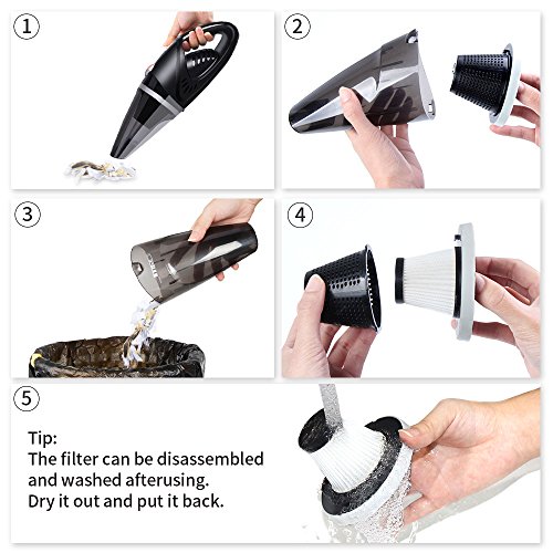 -. Feature : Powerful Suction- 12V 106 W 70DB car vacuum provides 4500PA suction, which is more powerful than the normal filter and has longer lifespan. / Wet & Dry Function- MEIDI portable car vacuum built with radial cyclones can effectively clean dust, pet hair, crumbs and other small things even spilled liquid inside the car. / Disassemble & Washable Filter- The density of disassemble and washable HEPA filter is much higher than ordinary filter, which makes it a effective filter medium of soot,dust and bacteria pollutants etc. / Convenient to Use- Car portable vacuum with 16.4ft power cord helps clean any hard-to-reach area. It comes with 3 accessories. Brush is used to clean hair and the dirty stuck on the car. Crevice can be used to clean the gap of leather . Extension Hose is to clean the trunk or other hard-to-reach area. / Choose MEIDI - 24-month Hassle-free Manufacturer's Warranty/ Free Lifetime Technical Support/ Money Back in 3 months.