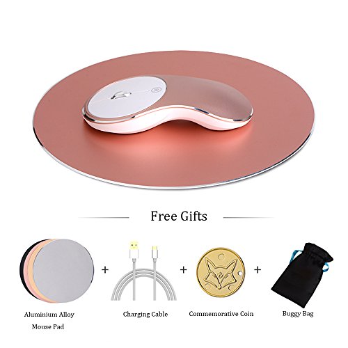 -. Title : Hi-azul Ultraslim Ergonomics Rechargeable Wireless Mouse Aluminum Alloy Quiet and Silent Mouse with Free Gifts(Aluminum Alloy Mouse Pad+ Charging Cable+Buggy Bag+Commemorative Coin) (Rose Gold)