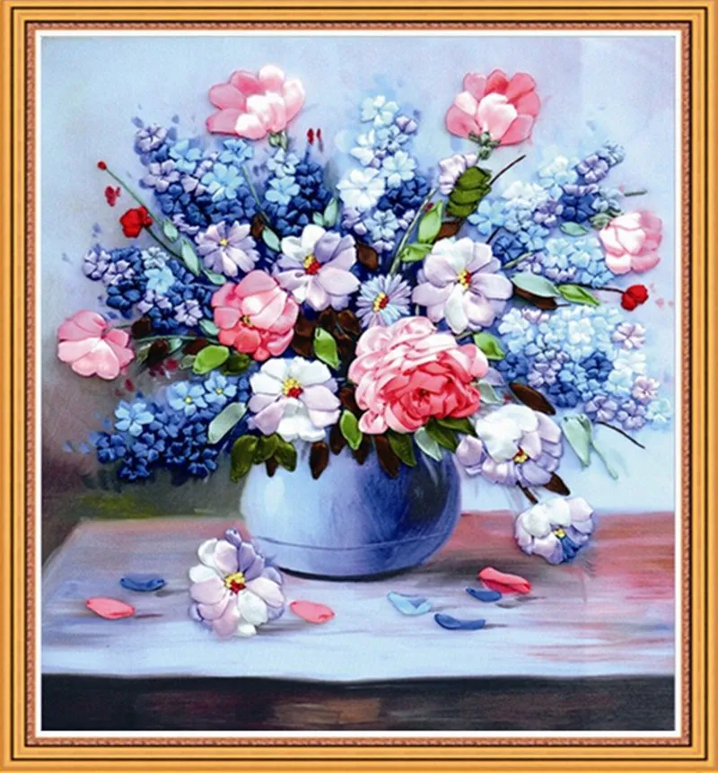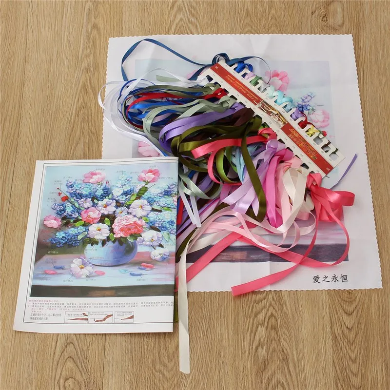 Crafts Needlework Embroidery Paintings Fashion Pastoral Eternal Love Ribbon Embroidery Color 3d Series New Paintings Flower