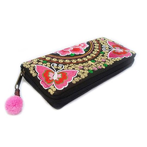 -. Title : Embroidery Hill Tribal Handbags Women Thai Traditional Pattern Butterfly Pink lady Original By Homesures