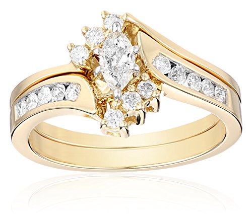 14k Yellow Gold Marquise and Round Diamond Bypass with Interlocking Band Bridal Set (0.50 cttw I-J Color, I2 Clarity), Size 7