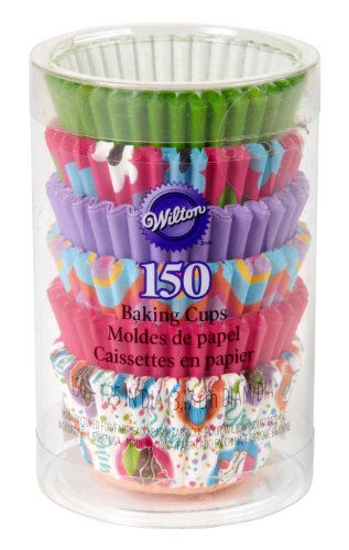 - Brightly colored fluted paper cups with a fun design