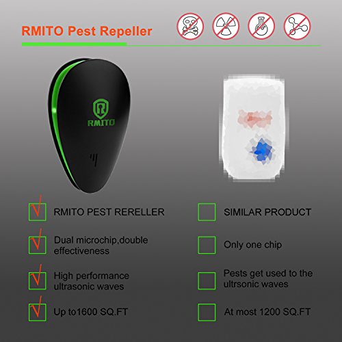 - NEW GENERATION ULTRASONIC TECHNOLOGY:RMITO ultrasonic pest repeller use cutting edge 65khz ultrasonic technology.The ultrasonic waves are totally inaudible to the human ear but extremely annoying to mice,mosquito,spider,ant,roach,fruit fly,bug and all other insects and rodents.Unlike baits and poisons,they’re also perfectly safe and won’t do any harm to human being or pets.